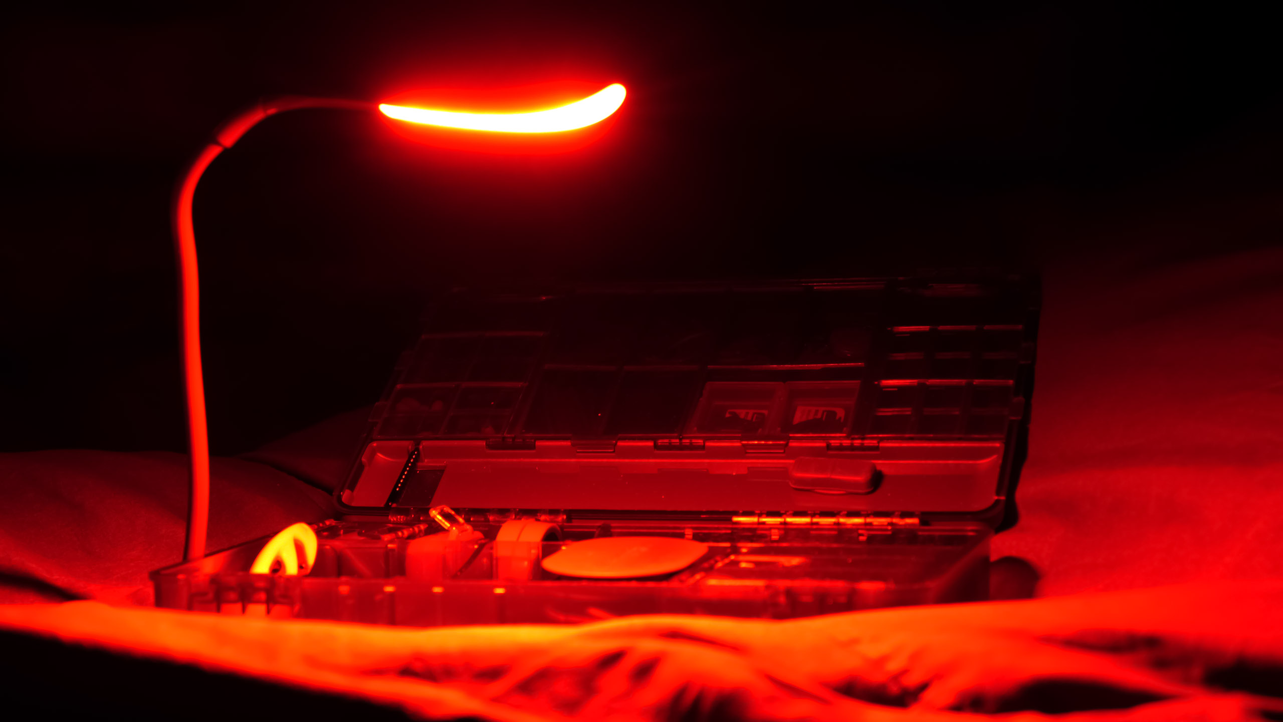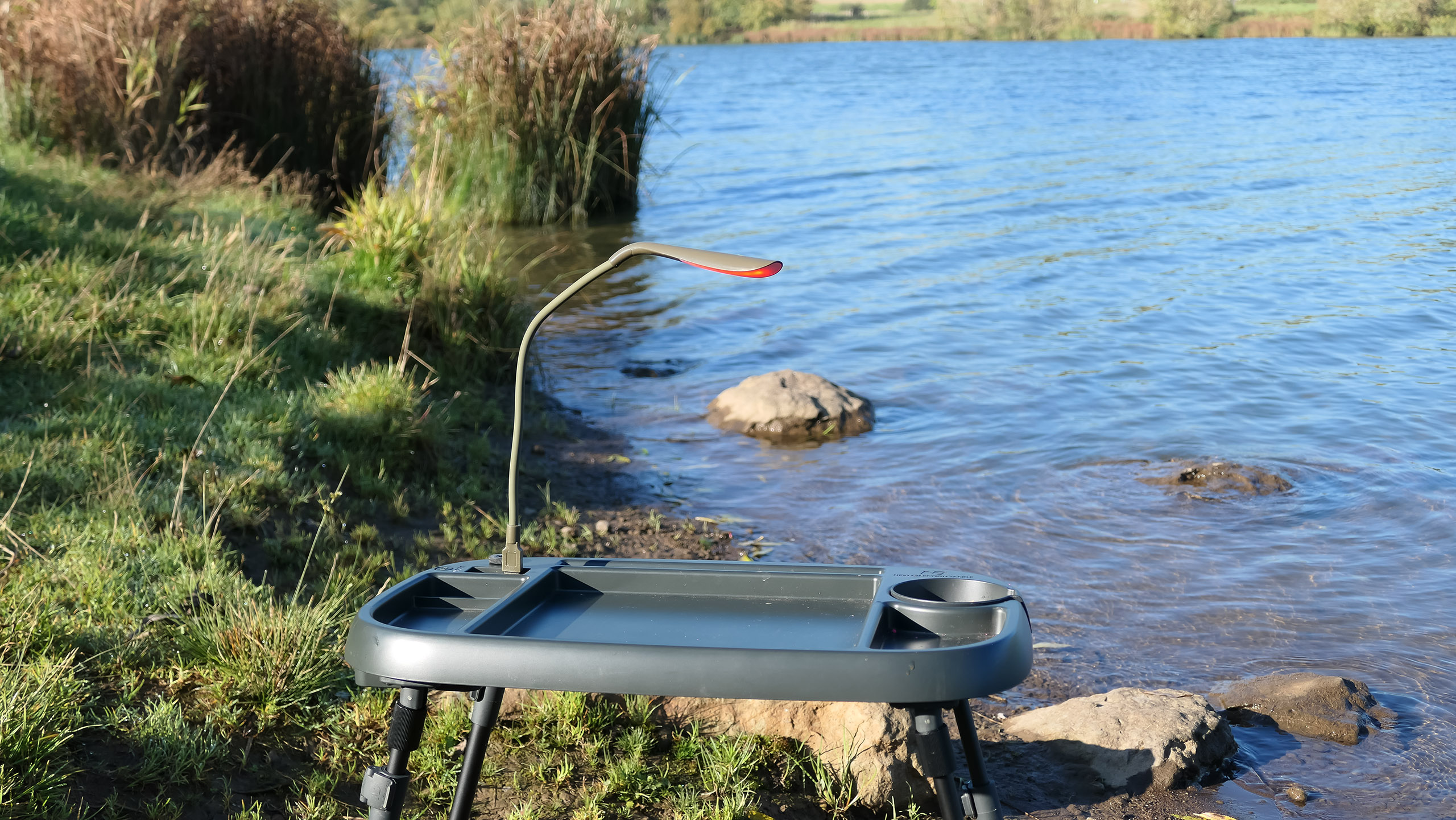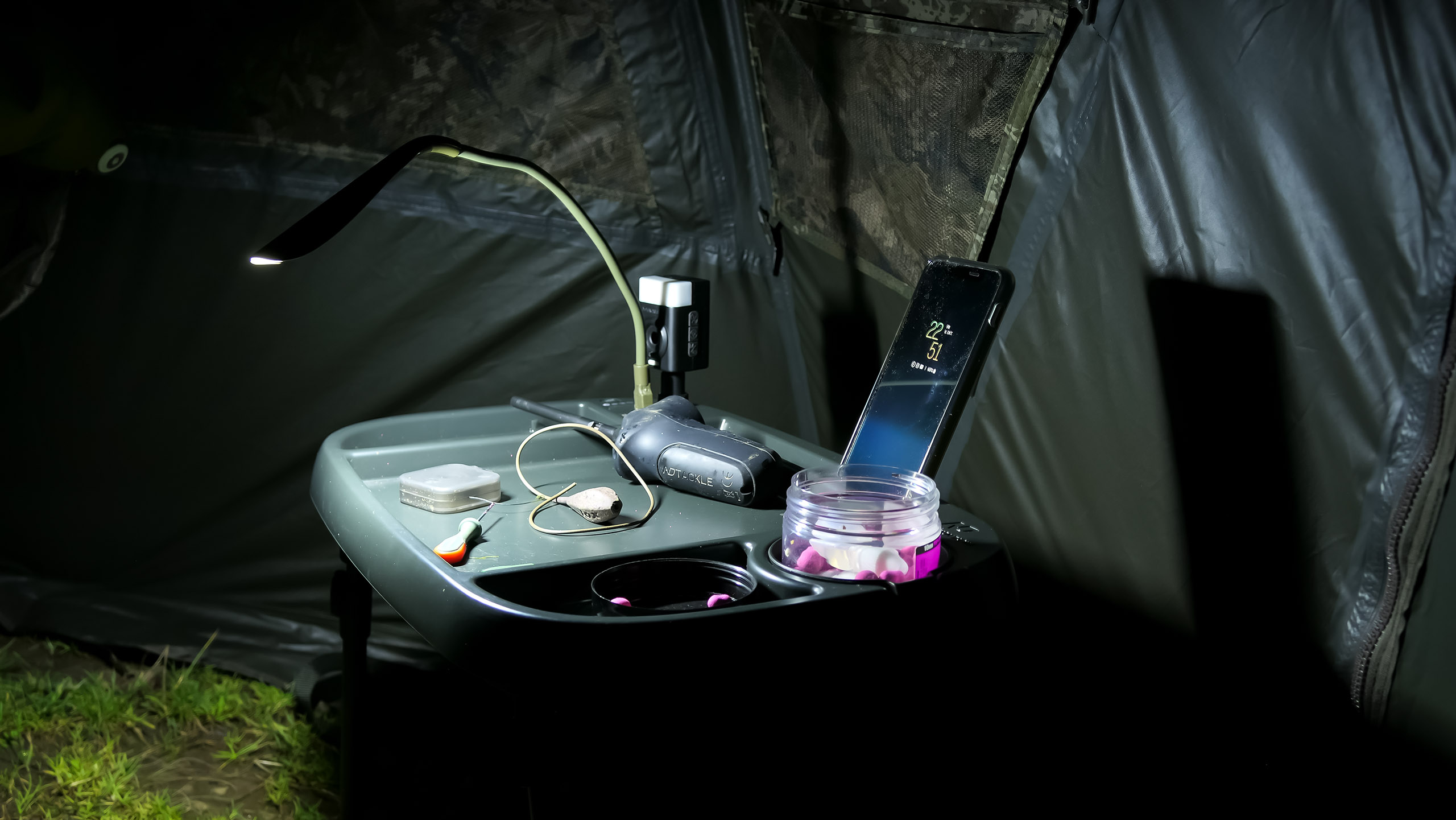Mehr als ein kleines Gadget, das mit jeder Powerbank verwendet werden kann, aber auch gut auf den Bivvy Table passt, ist das flexible USB-Licht. Wir haben selten so ein funktionales Bivvy Light gehabt. So hat das USB-Light auch Rotlicht, was für Angler besonders wichtig ist, da es die Nachtsichtigkeit erhält. Weißes Licht gibt es natürlich auch. Die Wahl zwischen beiden Lichtfarben ist clever gelöst. Eine Berührung schaltet rotes Licht ein, zwei Mal Berühren das weiße Licht. Der Clou ist, dass beide Lichtfarben sogar stufenlos dimmbar sind. Einfach die Hand auflegen und schon dimmt man runter oder hoch.