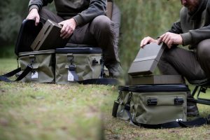 There are many EVA bags for anglers on the market. And almost all of them are the same. It is clear that we do not see any added value in simply bringing out the same bags as everyone else. Our modular EVA bag does a few things differently to increase its practicality. First, we have developed a very solid connection system for the bags. This consists of super-stable male and female Teflon connectors that are locked in place with a magnetic locking pin. The connectors are aligned with each other on a metal rail, which makes it easier to connect the bags. Of course, you can’t see the construction, but everything is based on practical experience and has been optimised over many months. By connecting two medium bags, you can then carry both comfortably together. Or you can use the connected bags in your bivvy as additional storage space. What everyone immediately notices is how extremely sturdy the lid is. We have spared no expense and present what is probably the most sturdy lid of any EVA bag to date. This makes the bag suitable for use as a table or seat. It is particularly suitable as a seat when you put a standard rectangular bucket in the bag. The bag has been designed to fit the buckets that every angler has. What are the benefits of this? Firstly, it provides additional reinforcement for the bag, allowing it to be used as a seat or a stable storage space. Secondly, it provides even better protection for sensitive items such as cameras, etc. Thirdly, the bag also works well as a cooler bag. The bucket inside the bag and the air between the bucket and the bag create a small layer of insulation.